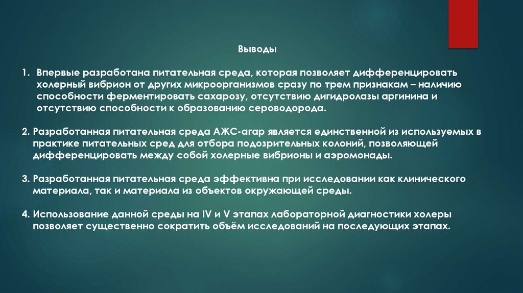 Выводы1. Впервые разработана питательная среда, которая позволяет дифференцировать