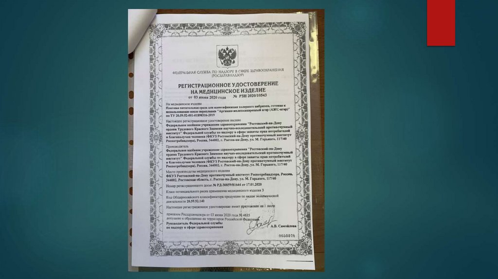 эксплуатационной и технической документации, а именно: идентификации холерного
