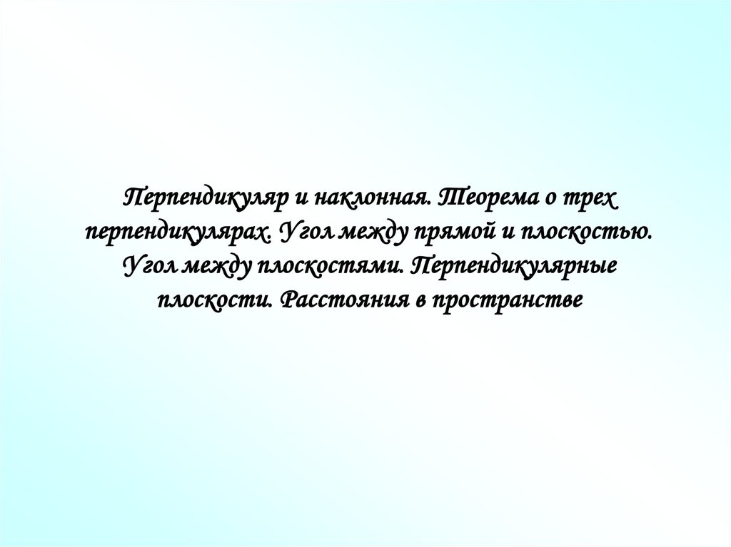 лекция Перпендикуляр и наклонная. Теорема о трех перпендикулярах. Угол между прямой и плоскостью. Угол между плоскостями. Перпендикулярны