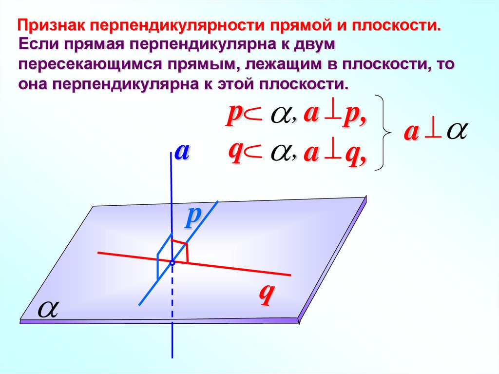 Признак перпендикулярности прямой и плоскости.Если прямая перпендикулярна к двум