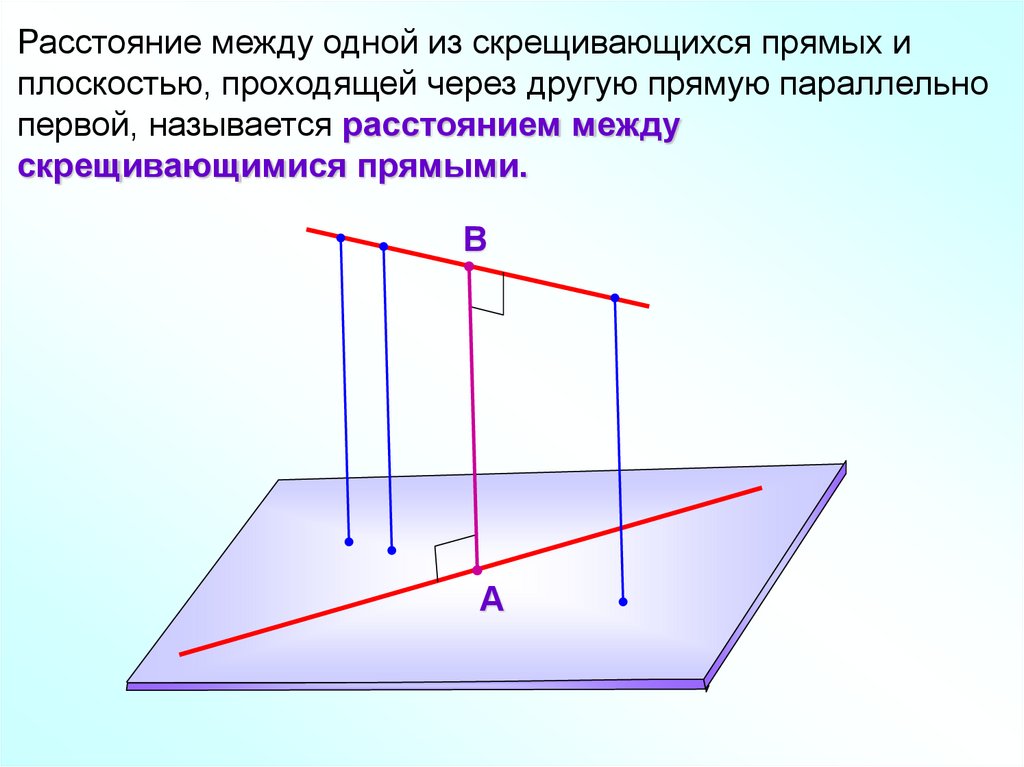 Расстояние между одной из скрещивающихся прямых иплоскостью, проходящей через другую прямую параллельно