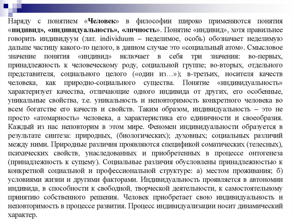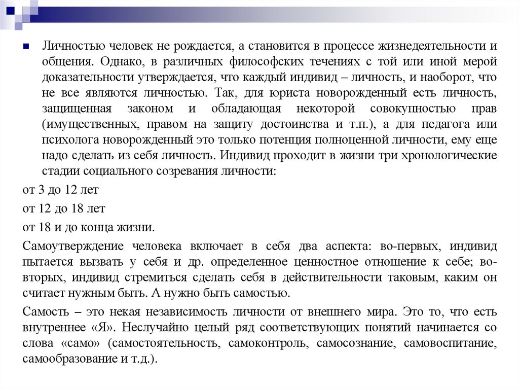 доказательности утверждается, что каждый индивид – личность, и наоборот, что