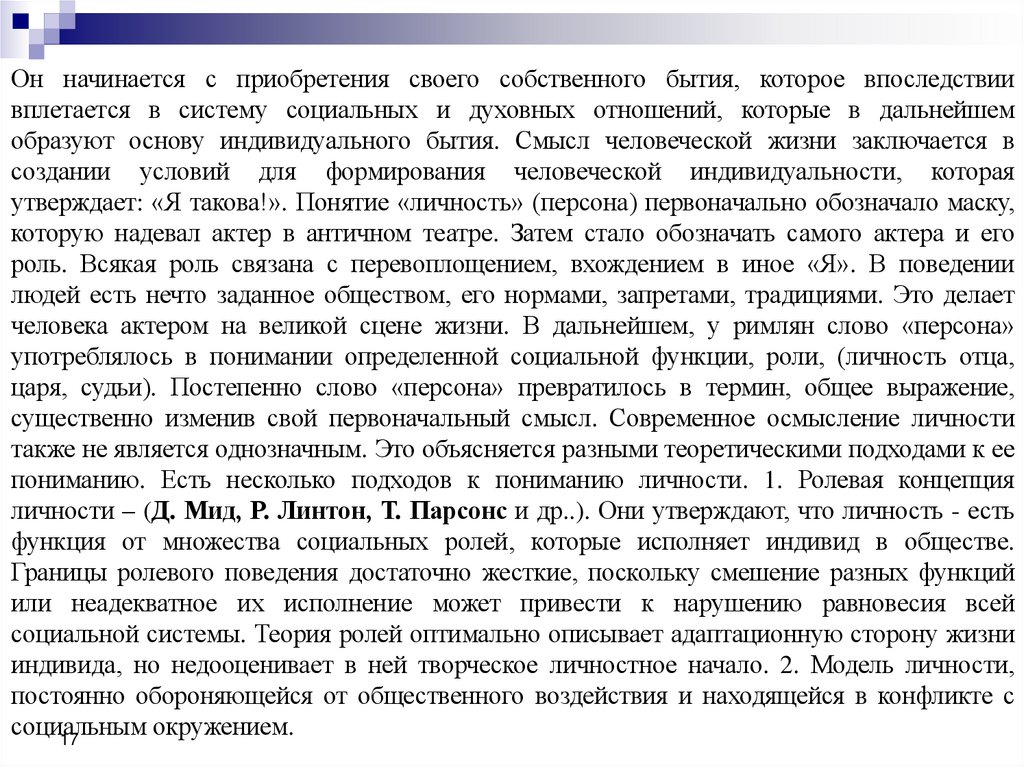 существенно изменив свой первоначальный смысл. Современное осмысление личности