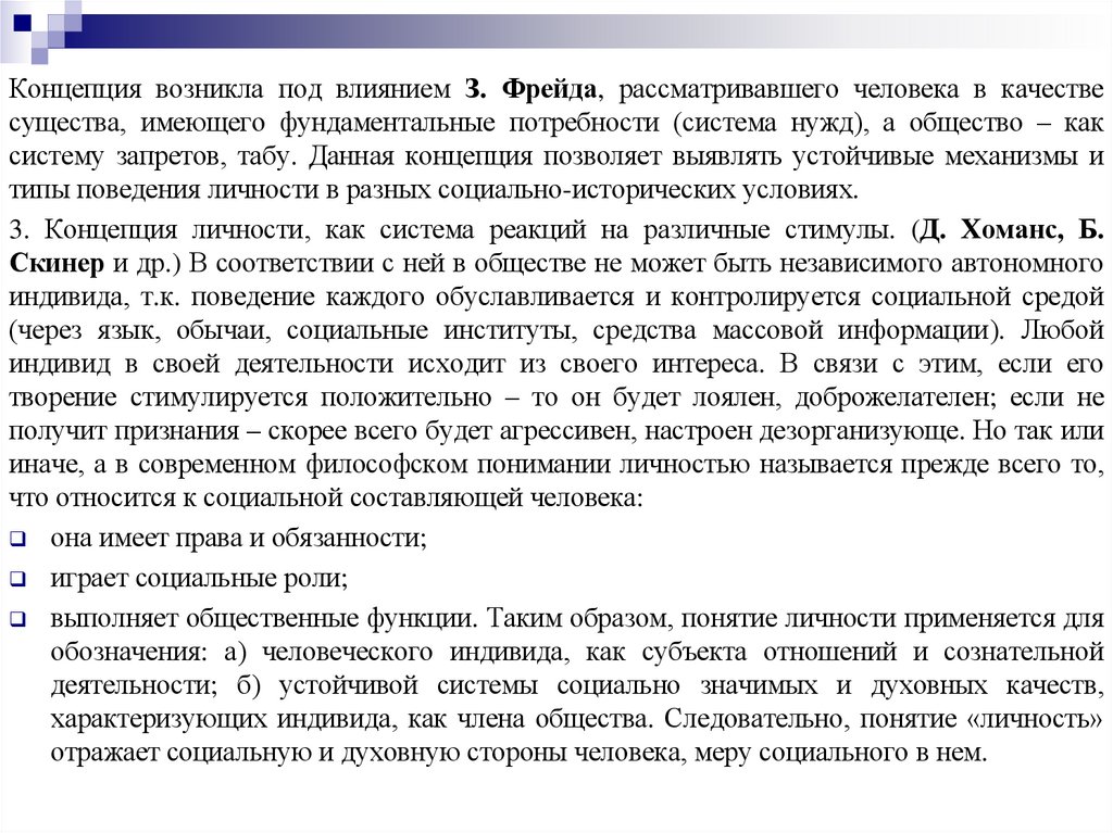 3. Концепция личности, как система реакций на различные стимулы. (Д. Хоманс, Б.