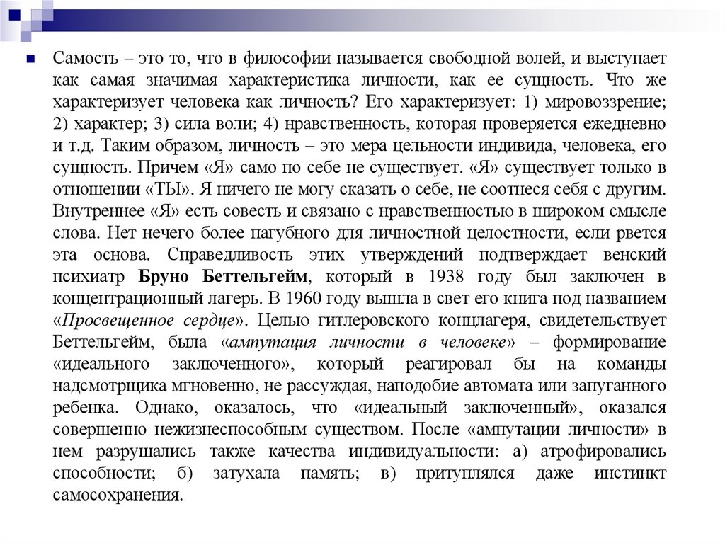 Беттельгейм, была «ампутация личности в человеке» – формирование