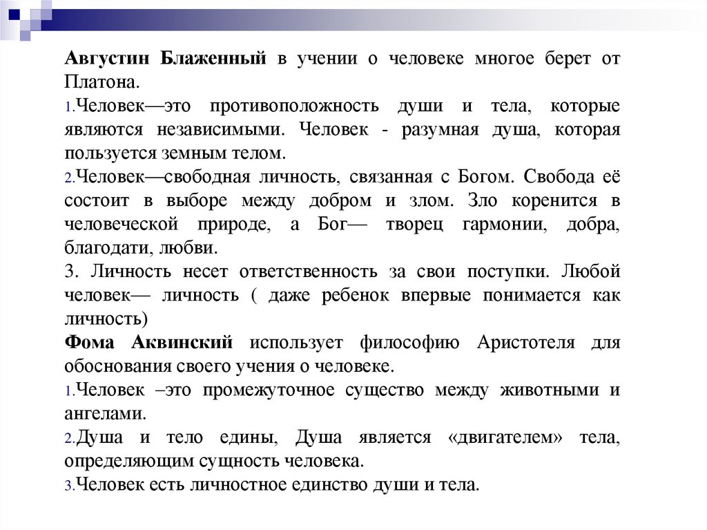 Августин Блаженный в учении о человеке многое берет отПлатона.