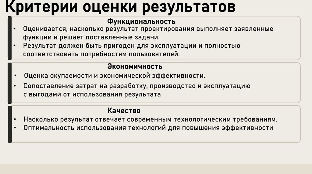 Ключевые критерии оценки — функциональность, качество и экономичность —