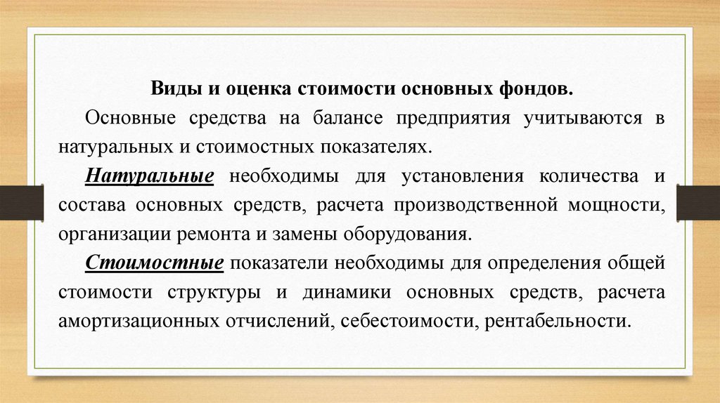 Виды и оценка стоимости основных фондов.Основные средства на балансе предприятия учитываются в