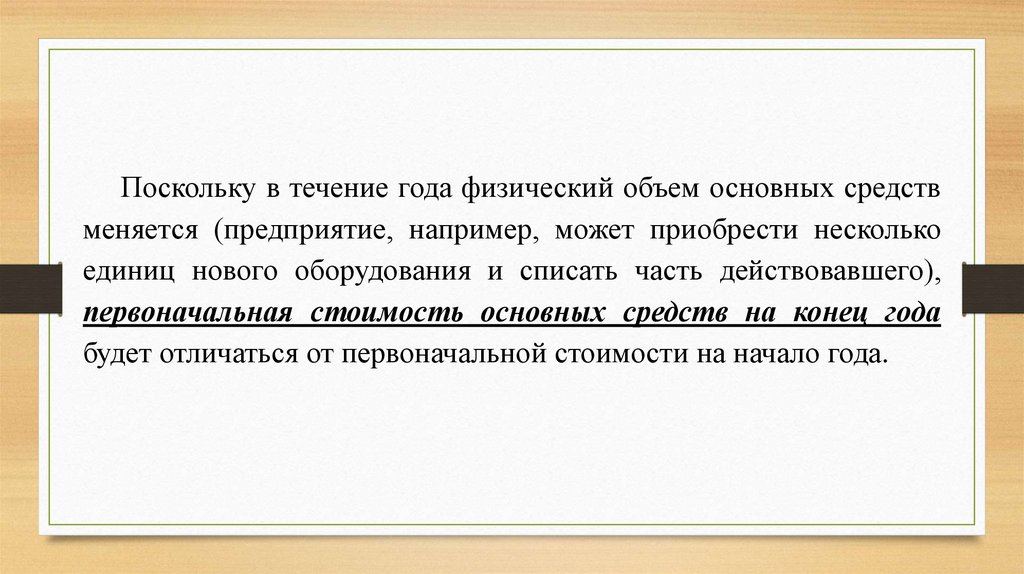 Поскольку в течение года физический объем основных средствменяется (предприятие, например, может приобрести несколько