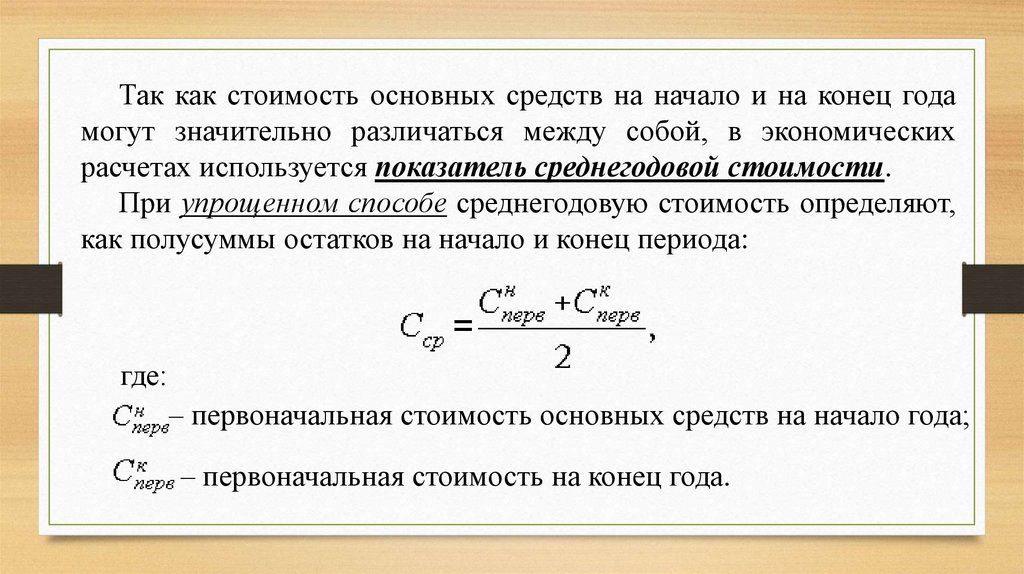 Так как стоимость основных средств на начало и на конец годамогут значительно различаться между собой, в экономических