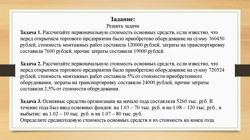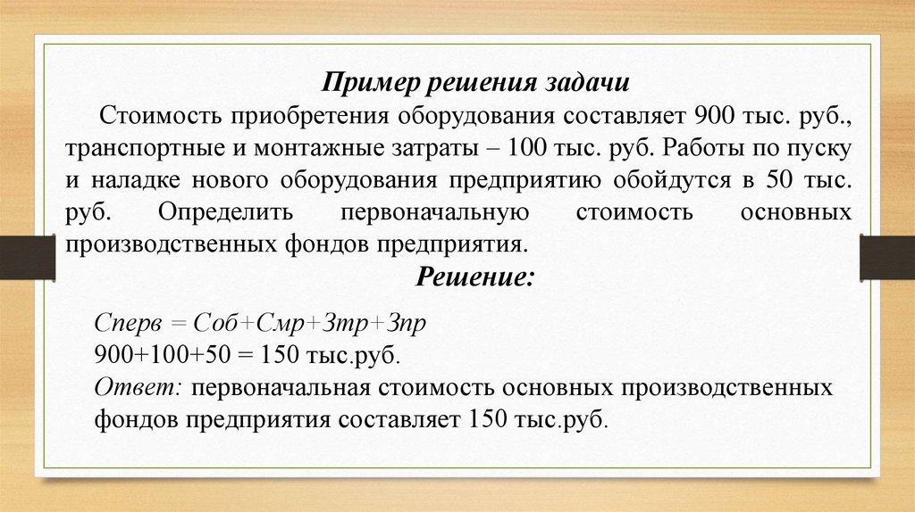 Пример решения задачиСтоимость приобретения оборудования составляет 900 тыс. руб.,