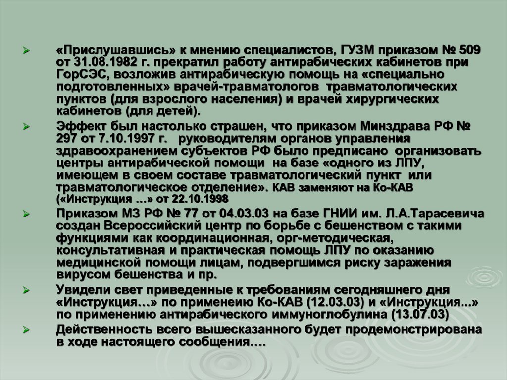 Приказ Министерства здравоохранения РоссийскойФедерации от 07 октября 1997 года № 297 «О