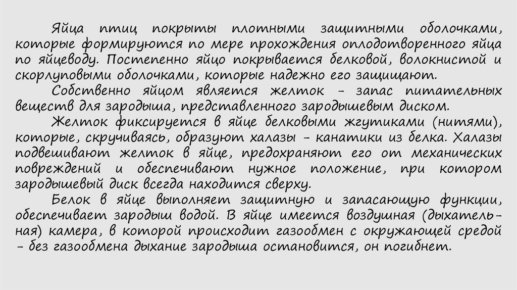 Яйца птиц покрыты плотными защитными оболочками,которые формируются по мере прохождения оплодотворенного яйца