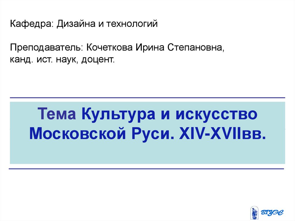Кафедра: Дизайна и технологийПреподаватель: Кочеткова Ирина Степановна,