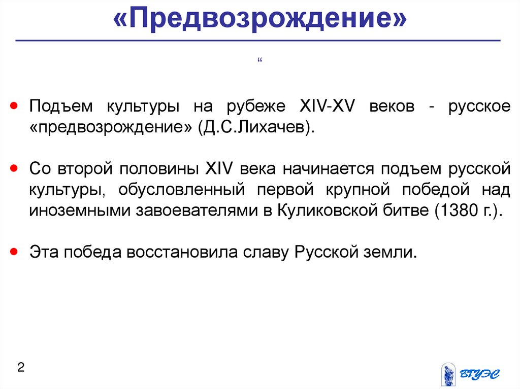 Подъем культуры на рубеже ХIV-ХV веков - русское