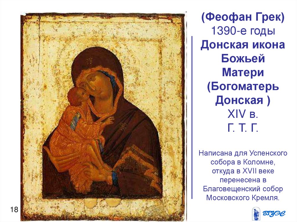 "Золотой век иконописи"Феофан Грек (1340-1405) - "Богоматерь Донская", росписи