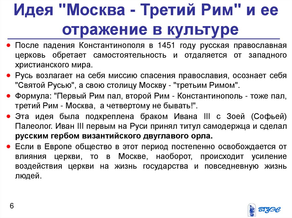 Идея "Москва - Третий Рим" и ееотражение в культуре
