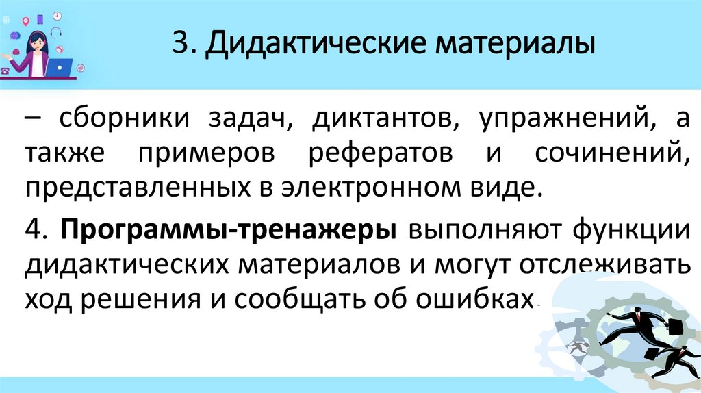 3. Дидактические материалы– сборники задач, диктантов, упражнений, а