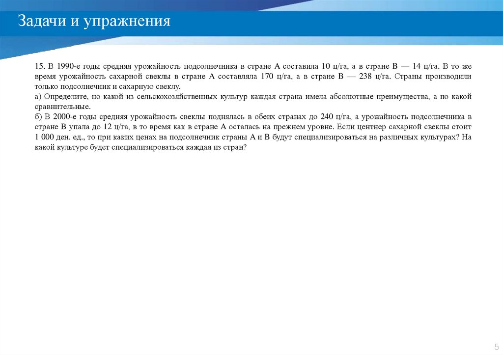Задачи и упражнения15. В 1990-е годы средняя урожайность подсолнечника в стране A составила 10 ц/га, а в стране B — 14 ц/га. В то же