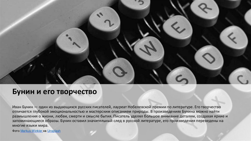 Бунин и его творчествоИван Бунин — один из выдающихся русских писателей, лауреат Нобелевской премии по литературе. Его творчество