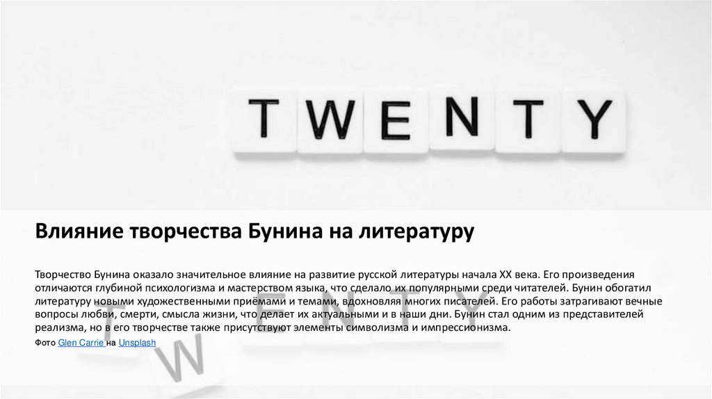 Влияние творчества Бунина на литературуТворчество Бунина оказало значительное влияние на развитие русской литературы начала XX века. Его произведения