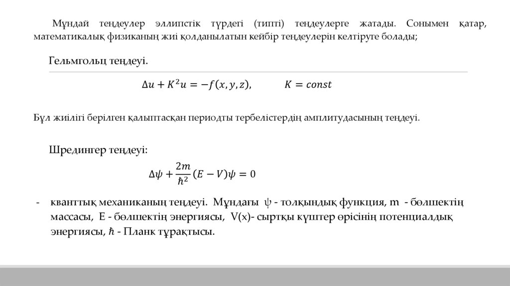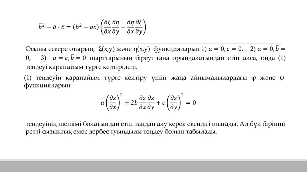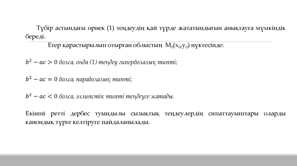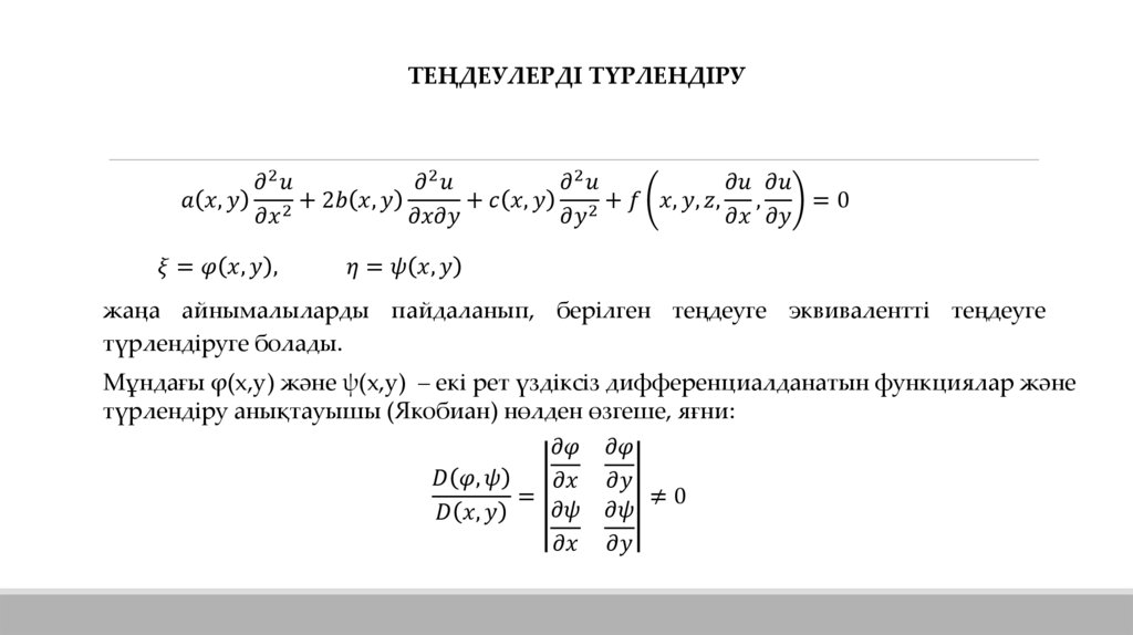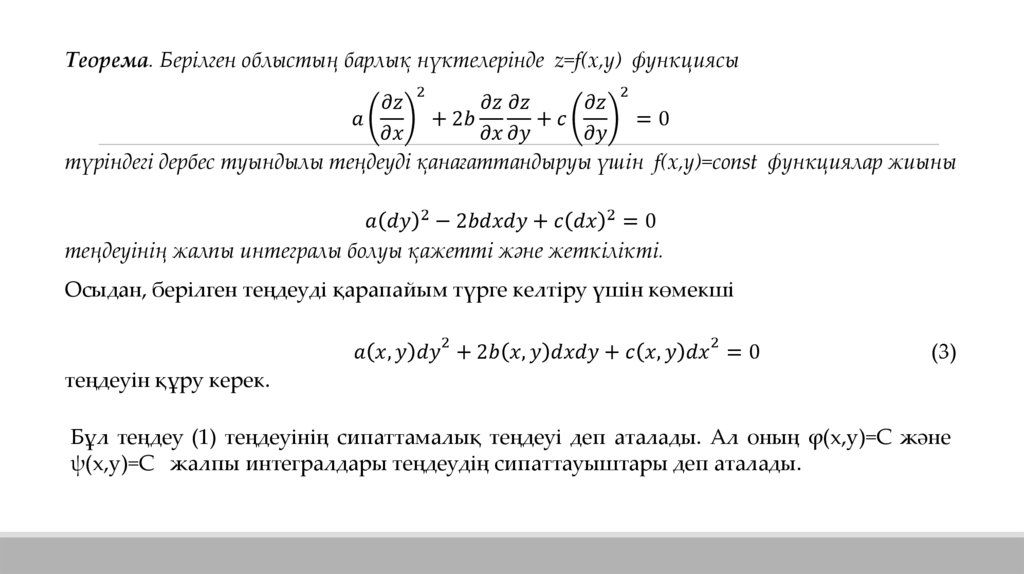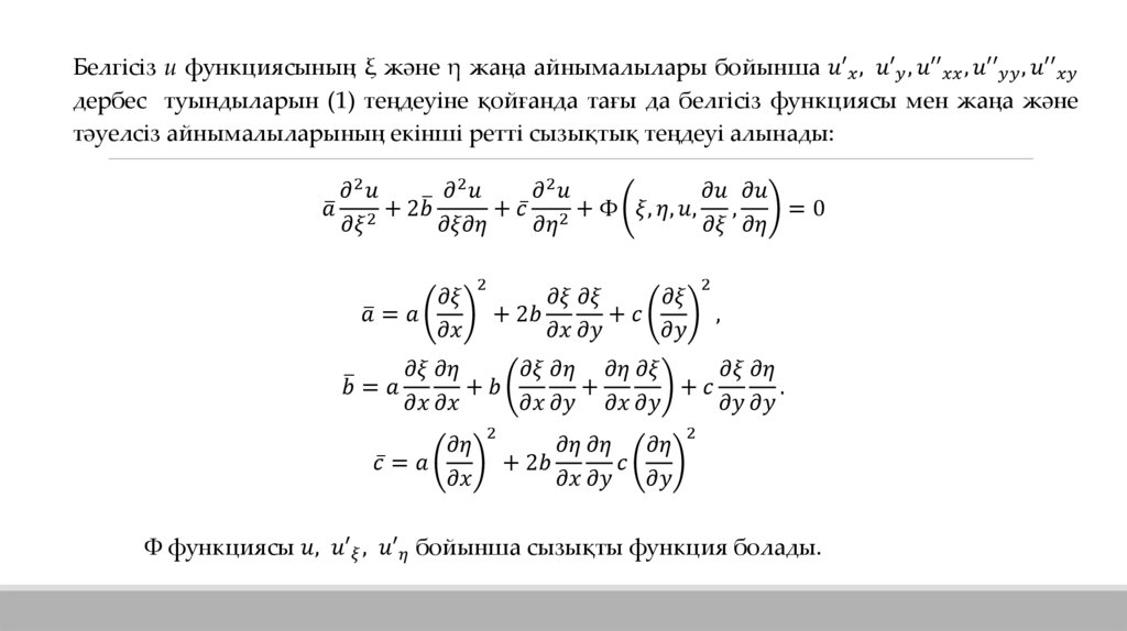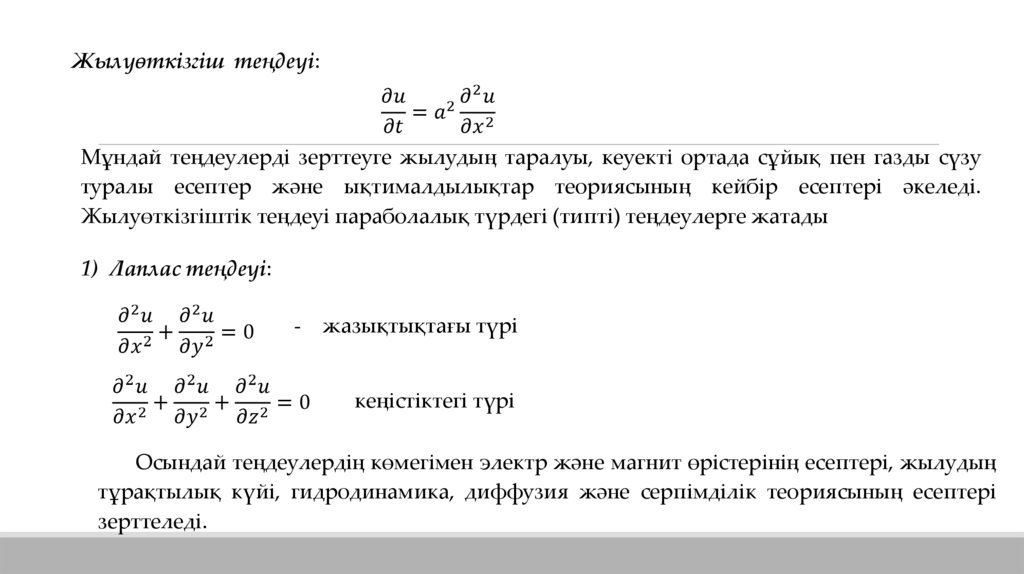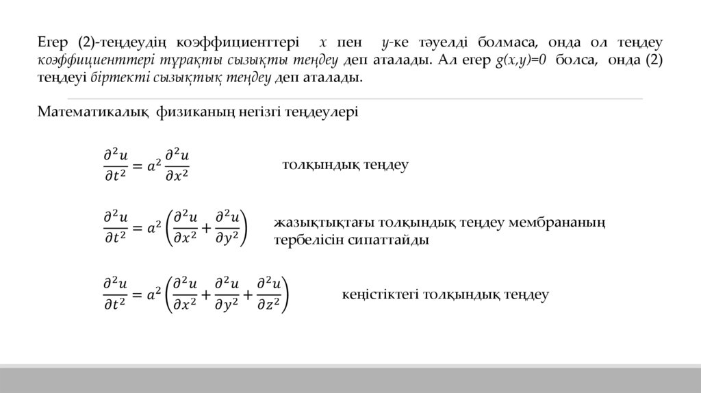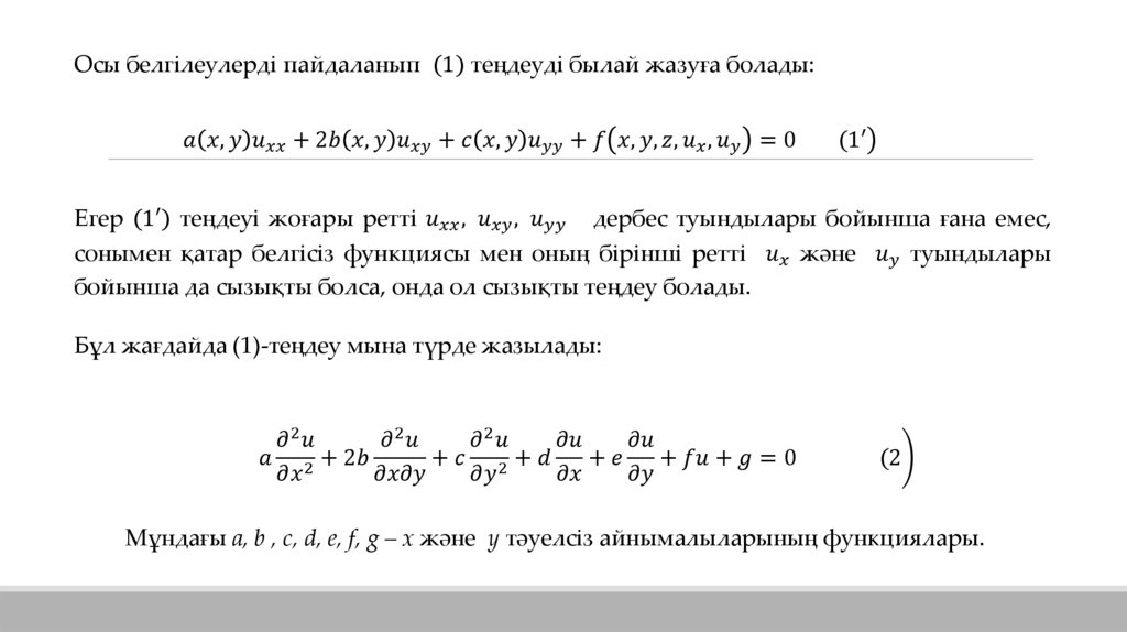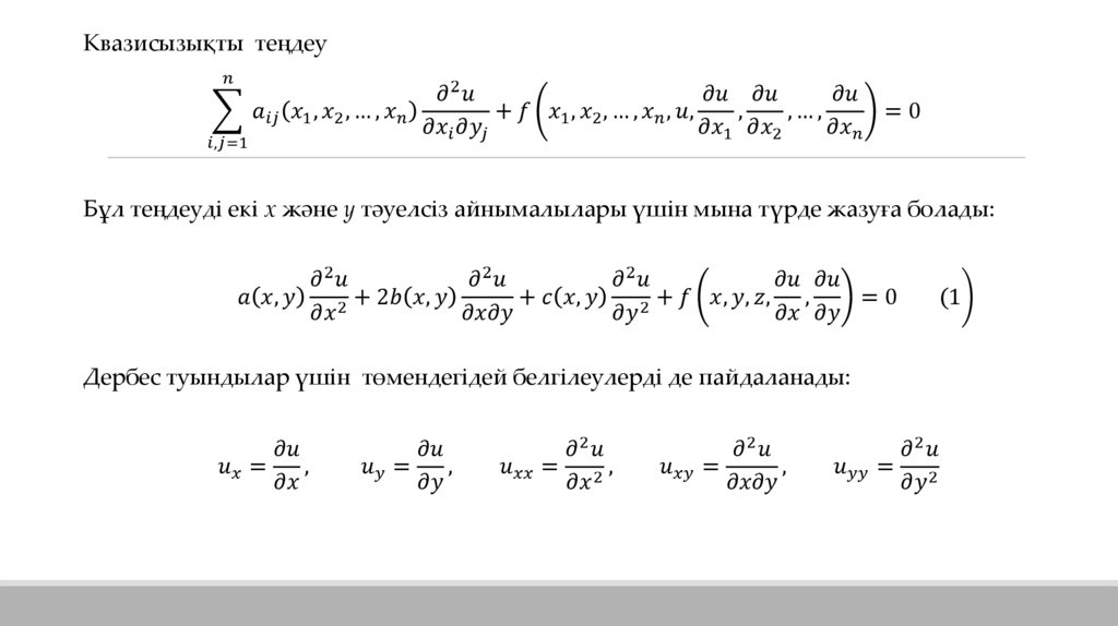 1. Дербес туындылардағы дифференциалдық теңдеулер. Теңдеулердің түрлері