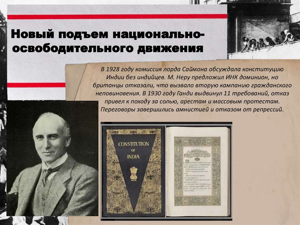 Новый подъем национальноосвободительного движенияВ 1928 году комиссия лорда Саймона обсуждала конституцию