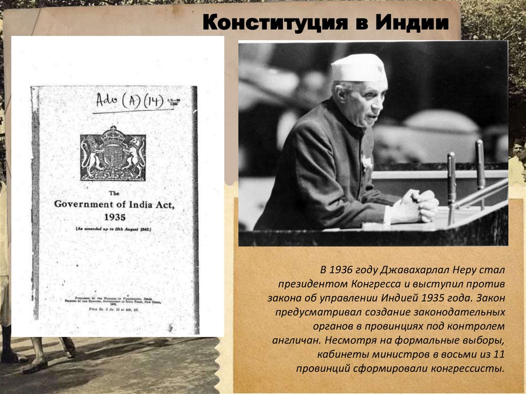 Конституция в ИндииВ 1936 году Джавахарлал Неру стал