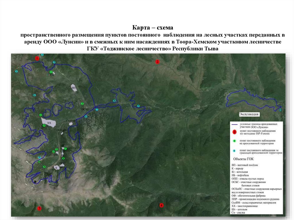 Карта – схемапространственного размещения пунктов постоянного наблюдения на лесных участках переданных в
