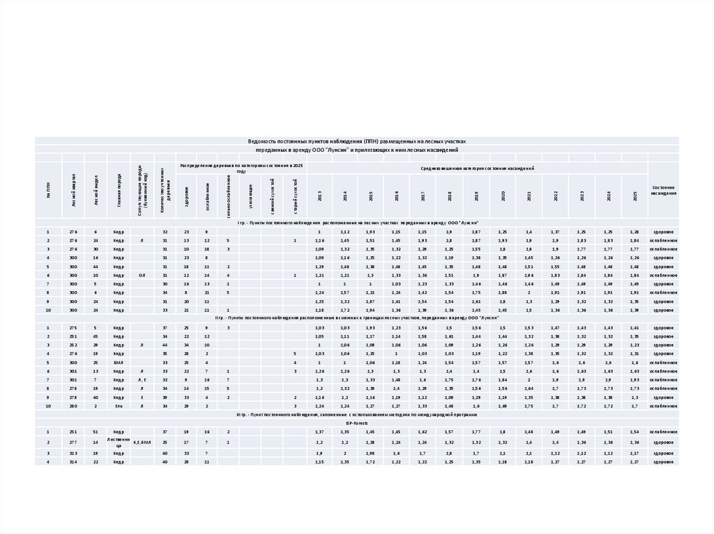Ведомость постоянных пунктов наблюдения (ППН) размещенных на лесных участках