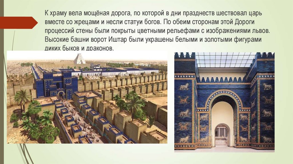 Высокие башни ворот Иштар были украшены белыми и золотыми фигурами