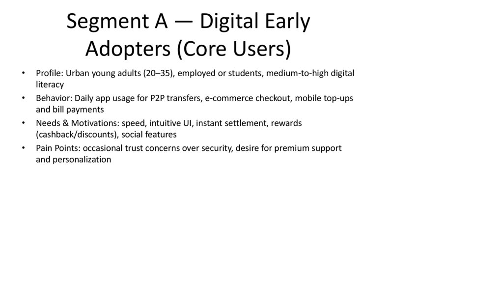 Segment A (Early Adopters): Large & growing, highly accessible via digital channels,