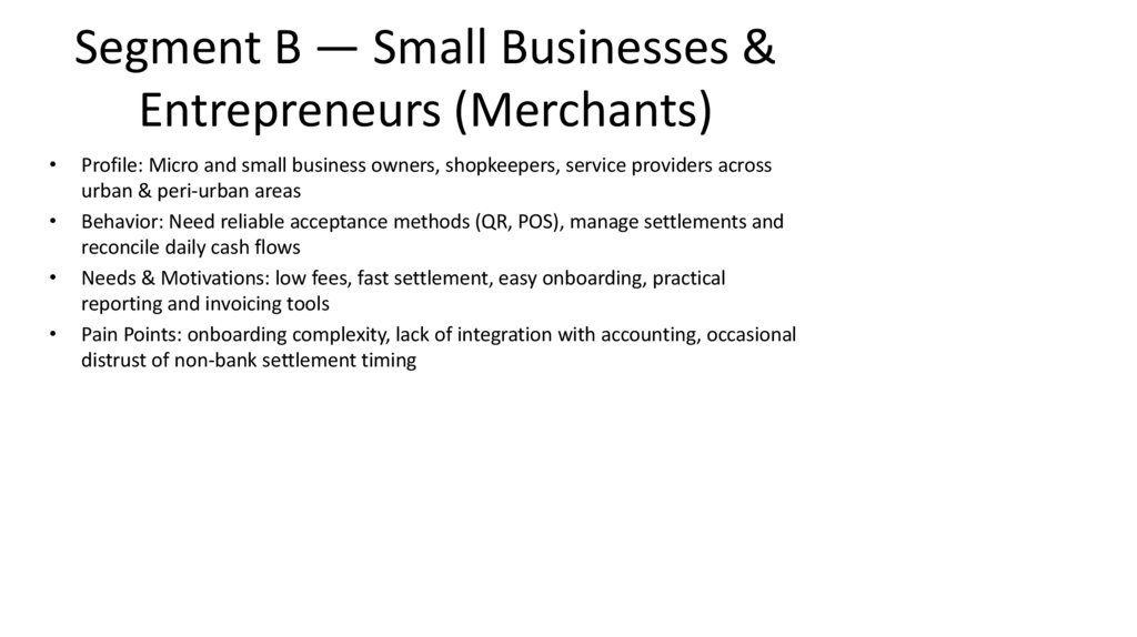 Segment B — Small Businesses &Entrepreneurs (Merchants)
