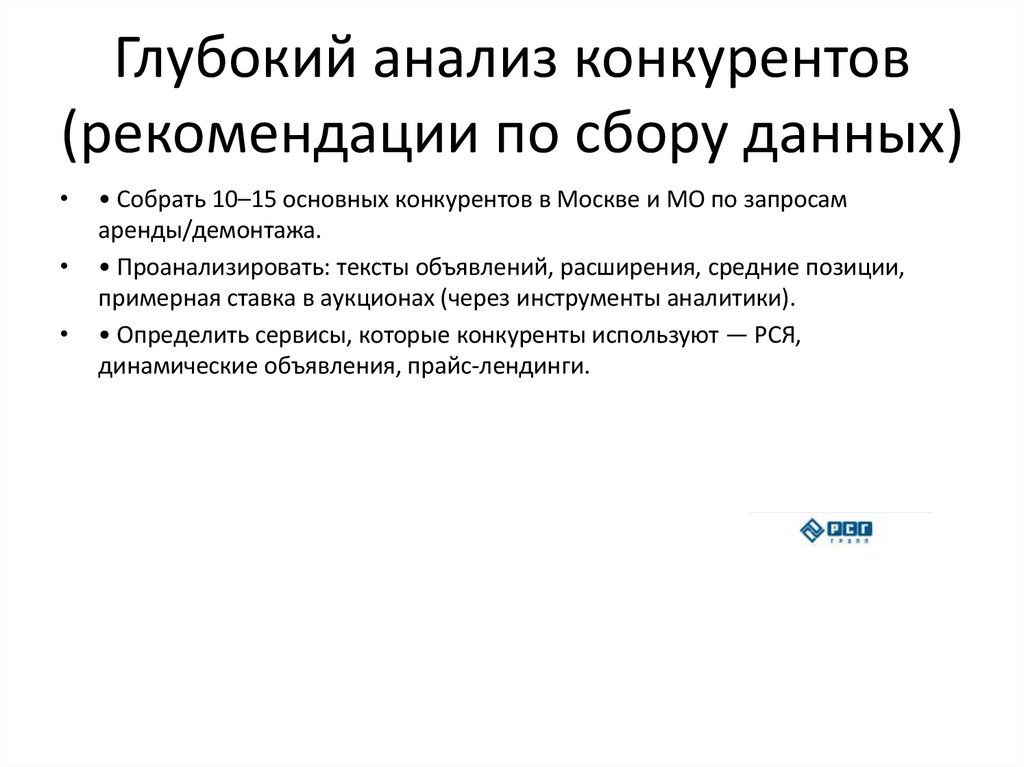 Глубокий анализ конкурентов(рекомендации по сбору данных)