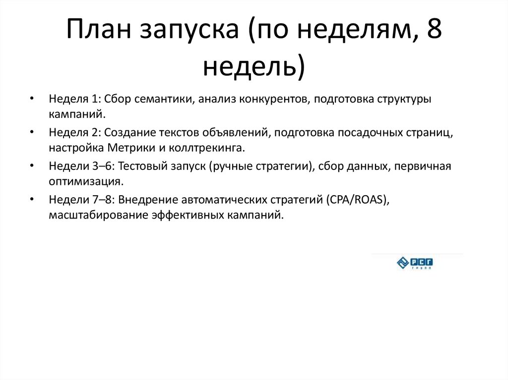 Недели 7–8: Внедрение автоматических стратегий (CPA/ROAS),