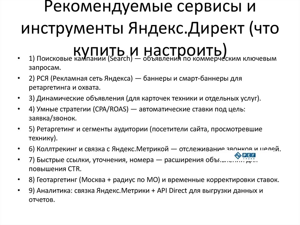 Рекомендуемые сервисы иинструменты Яндекс.Директ (что