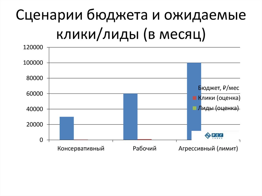 Сценарии бюджета и ожидаемыеклики/лиды (в месяц)