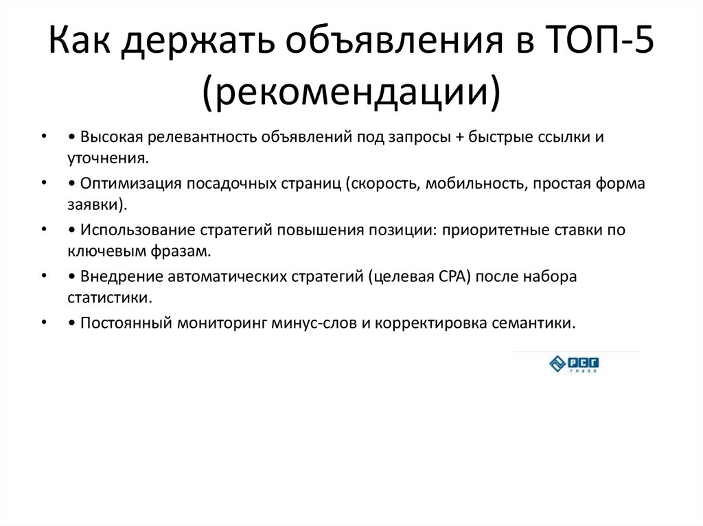 удерживать присутствие в ТОП-5 по ключевым коммерческим запросам и