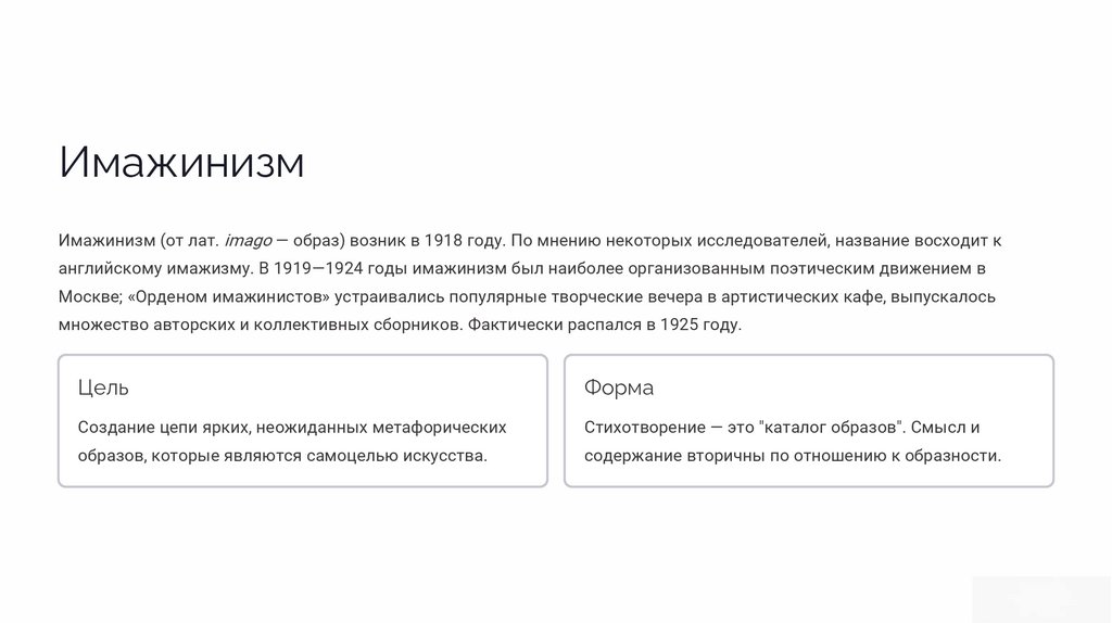 английскому имажизму. В 1919—1924 годы имажинизм был наиболее организованным поэтическим движением в