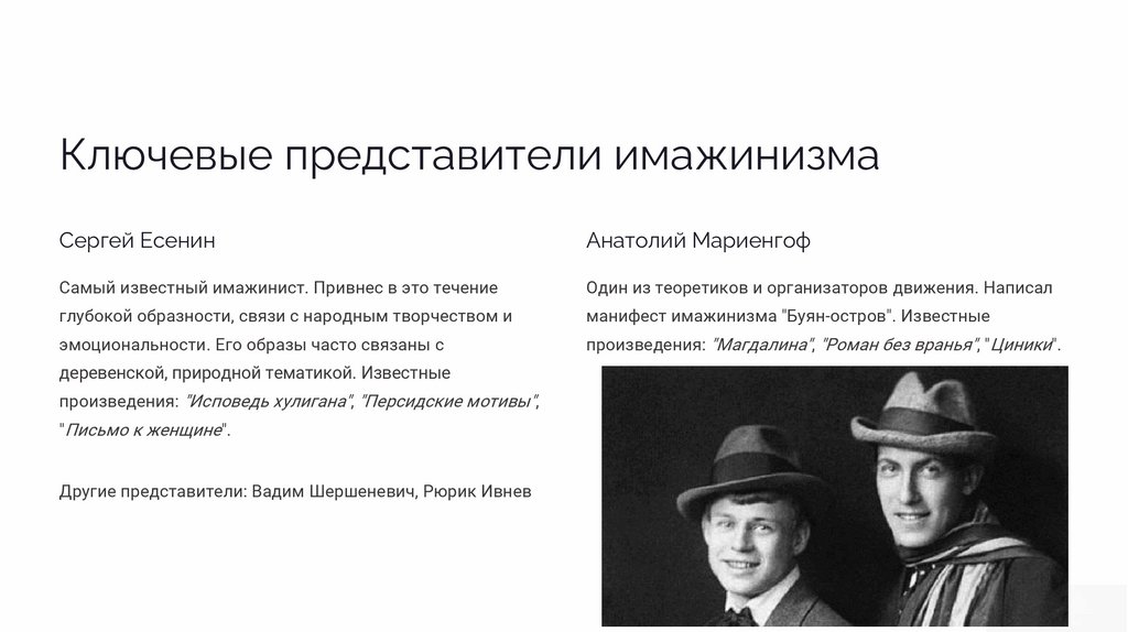 Другие представители: Вадим Шершеневич, Рюрик Ивнев