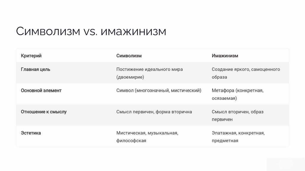 Символизм vs. имажинизмКритерий