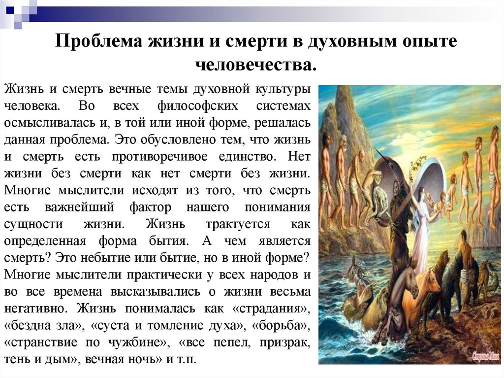 Жизнь и смерть. Смысл жизни.1. Проблема жизни и смерти в духовным