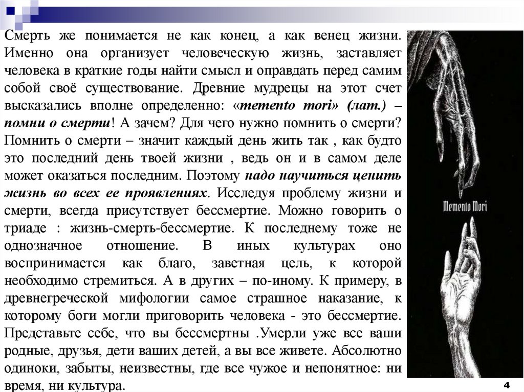 смерти, всегда присутствует бессмертие. Можно говорить о