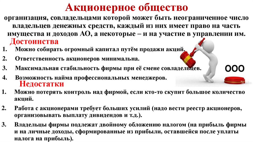 Работа с акционерами требует больших усилий (надо вести реестр акционеров,