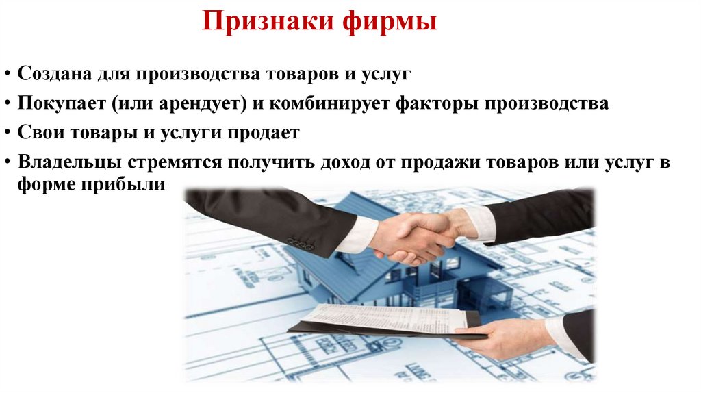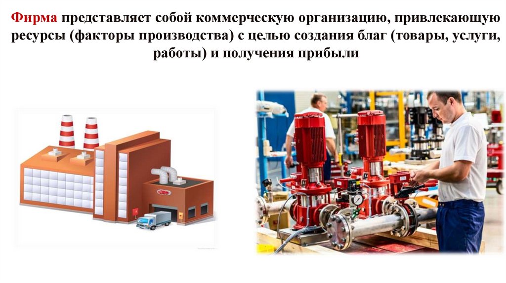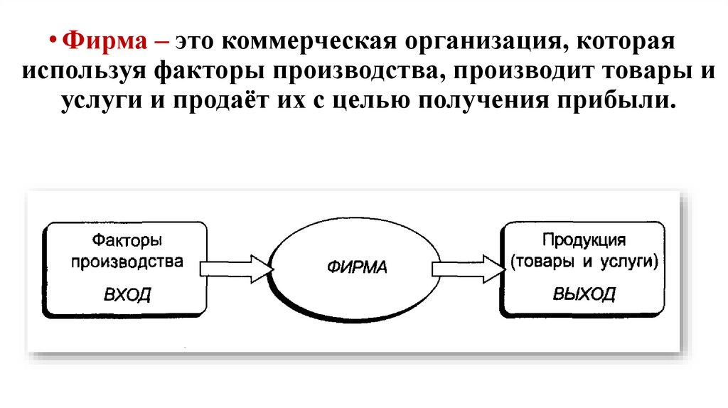 • Фирма – это коммерческая организация, котораяиспользуя факторы производства, производит товары и