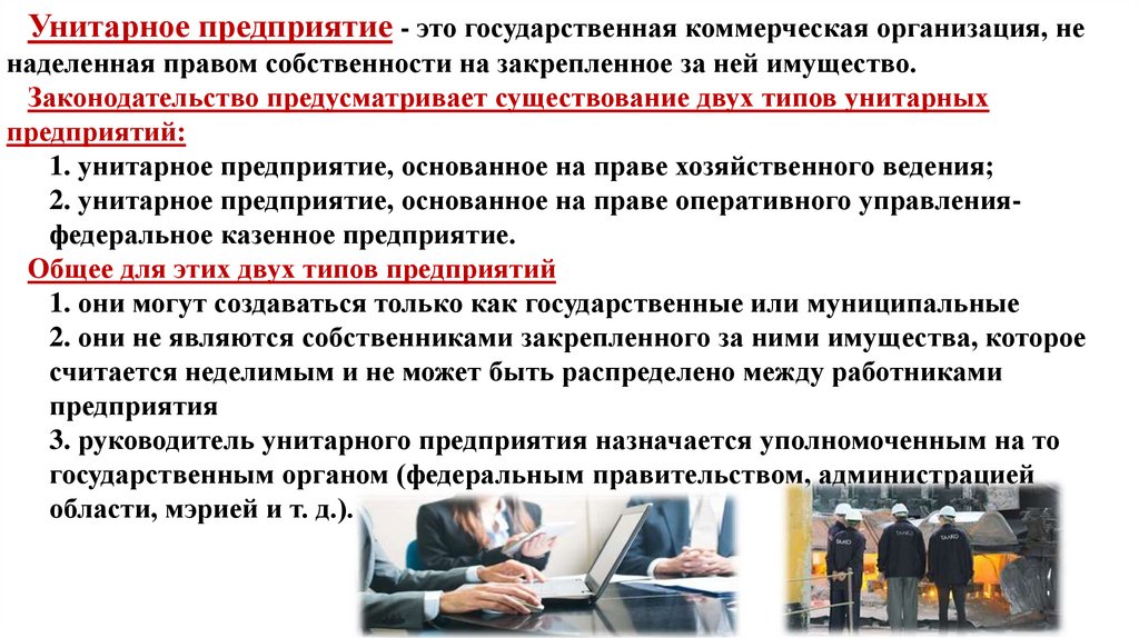 1. унитарное предприятие, основанное на праве хозяйственного ведения;