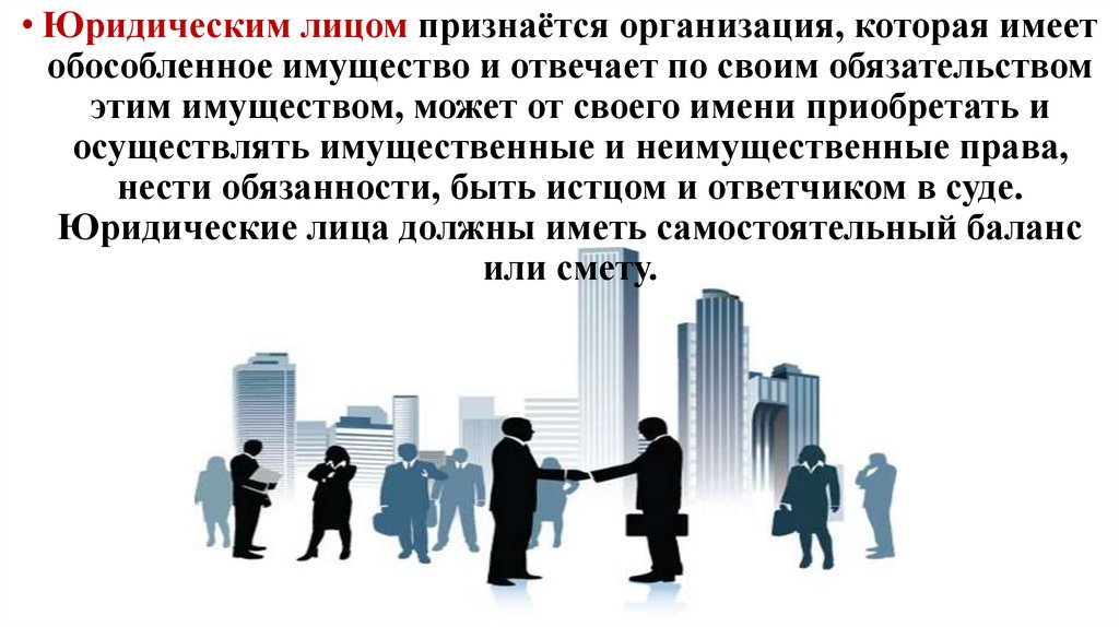 • Юридическим лицом признаётся организация, которая имеетобособленное имущество и отвечает по своим обязательством