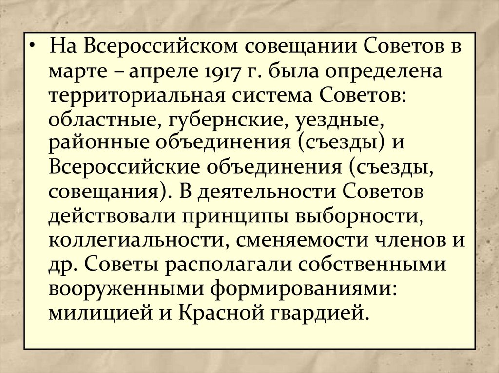 • На Всероссийском совещании Советов вмарте – апреле 1917 г. была определена