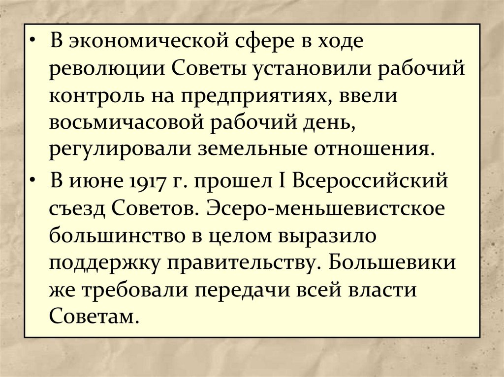 • В экономической сфере в ходереволюции Советы установили рабочий