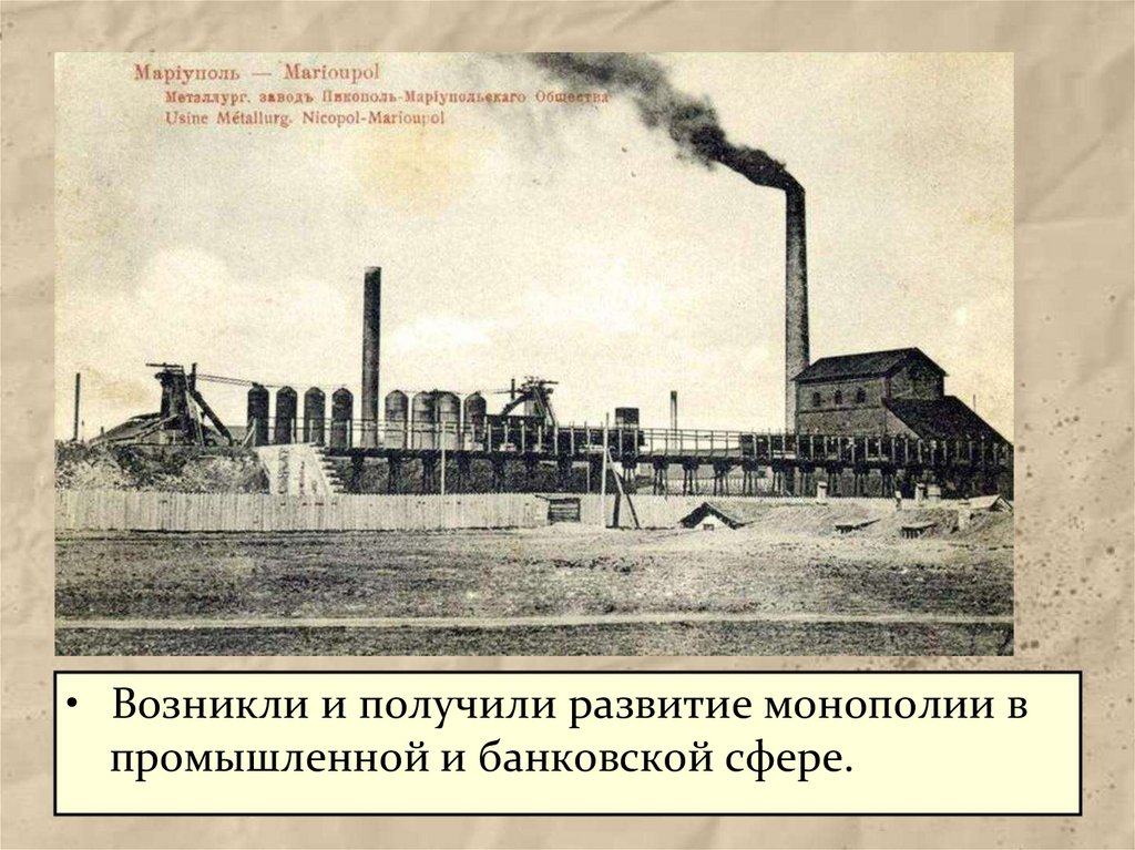• Возникли и получили развитие монополии впромышленной и банковской сфере.